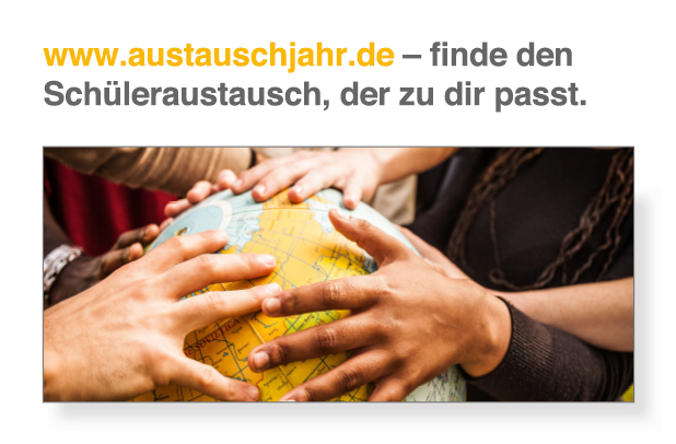 Finde den Schüleraustausch, der genau zu dir passt - Auf austauschjahr.de können sich Schülerinnen und Schüler, Eltern, Lehrerinnen und Lehrer sowie alle anderen Interessierten über Angebote von Schüleraustauschorganisationen in Deutschland informieren. Die Plattform informiert übersichtlich und schnell über passende Programme zwischen zwei Monaten und einem Schuljahr im Ausland. Dazu stellt austauschjahr.de umfangreiche Hintergrundinformationen und Insidertipps rund um den Schüleraustausch zur Verfügung. Von Tipps für die finanzielle Unterstützung des Schüleraustausches über Informationen zu Stipendien findet man hier auch Erfahrungsberichte und Bewertungen ehemaliger Teilnehmerinnen und Teilnehmer, die zusätzlich bei der Suche nach dem passenden Austauschprogramm helfen.