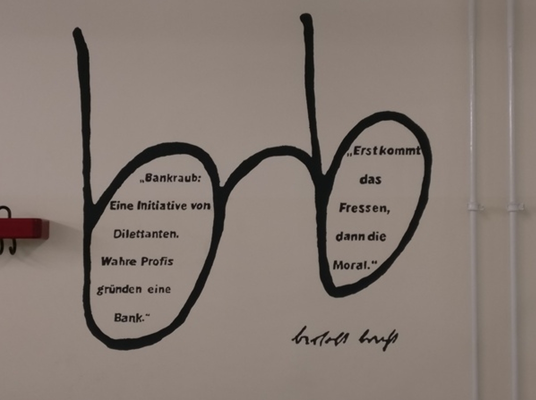 Wall murals with quotes from Bertolt Brecht were designed and painted by students to improve the classroom environment.