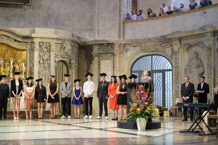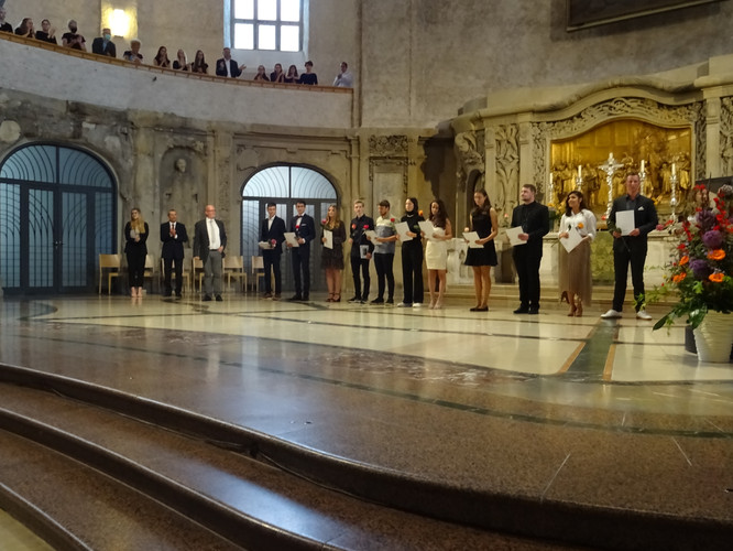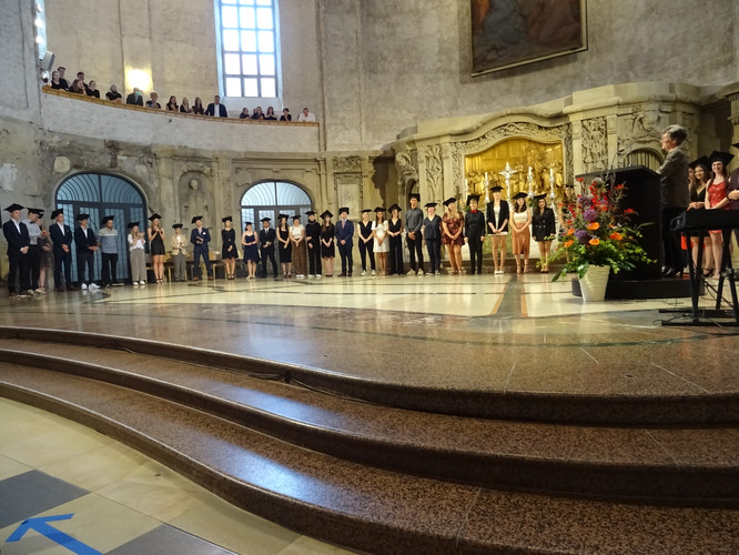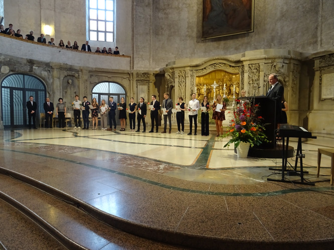 In diesem Schuljahr lief vieles anders als gedacht. Und so feierten unsere Abiturientinnen und Abiturienten ihren Schulabschluss bereits auf dem Abiball im Flughafen, bevor sie ihre Zeugnisse in den Händen hielten. Die feierliche Zeugnisübergabe fand schließlich am Donnerstag, den 22. Juli 2021, wie im Vorjahr in der Kreuzkirche statt. Im Rahmen des Festakts wurden außerdem außerunterrichtliches Engagement gewürdigt und Eltern für ihren besonderen Einsatz für die Schule ihrer Kinder geehrt.