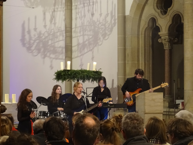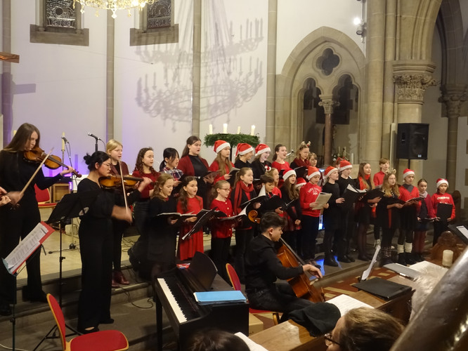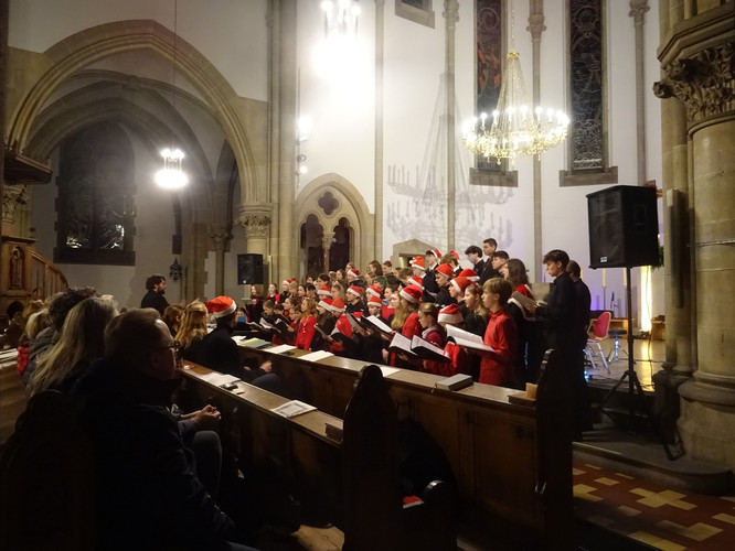 Seit klar ist, dass unser Gymnasium an das Terrassenufer umziehen wird, beschäftigen wir uns sehr viel mit Räumen: Werden wir genug Unterrichtsräume haben? Werden alle Materialien in die neuen Räume passen? Wo kann der Sportunterricht stattfinden? Wird die Oberstufe wieder einen eigenen Aufenthaltsraum haben? Werden wir genügend Räume für den Projektunterricht haben? Wird es einen Raum für die Bibliothek geben? Für all diese Fragen haben sich Antworten und Lösungen gefunden. Was uns allerdings weiterhin (durchaus schmerzlich) fehlt, ist unsere Aula. Auch sie war in einigen der letzten Jahre Austragungsort unserer Adventskonzerte. Doch da auch sie sich bei diesen Gelegenheiten mitunter als zu klein für die vielen Zuschauerinnen und Zuschauer, aber auch Ensembles erwiesen hat, waren zuletzt auch dafür größere Räume gefragt. Das Adventskonzert - ein weiteres Raumproblem?