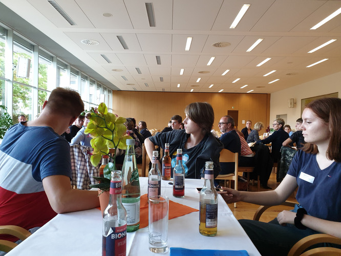 Die Konferenz fand in einem Unigebäude statt und begann auch zugleich in einem Vorlesungssaal mit der Eröffnung durch Magdalena Metzler vom SMK. Schnell wurde klar, dass das Thema Klimaschutz/Klimawandel und damit einhergehend auch das Finden von neuen Klimaschulen und die Präferenz des Themas Nachhaltigkeit in den Schulen aktuell an Bedeutung zunimmt. Dies betonte auch der folgende Redner vom Ministerium, der zugleich darauf hinwies, neue Mitglieder zu werben, um den Bund und das Netzwerk der Klimaschulen zu vergrößern. Anschließend folgte ein Vortrag von Prof. Dr. Dr. Felix Ekardt zum Thema „Klimawandel und die Transformation zur Nachhaltigkeit“. Auch er informierte uns über wichtige Aspekte, Gewohnheiten und Gedankengänge von Menschen, wie wir handeln könnten und sollten und letztendlich, dass es an der Zeit ist zu handeln und dass jeder einzelne wichtig ist.