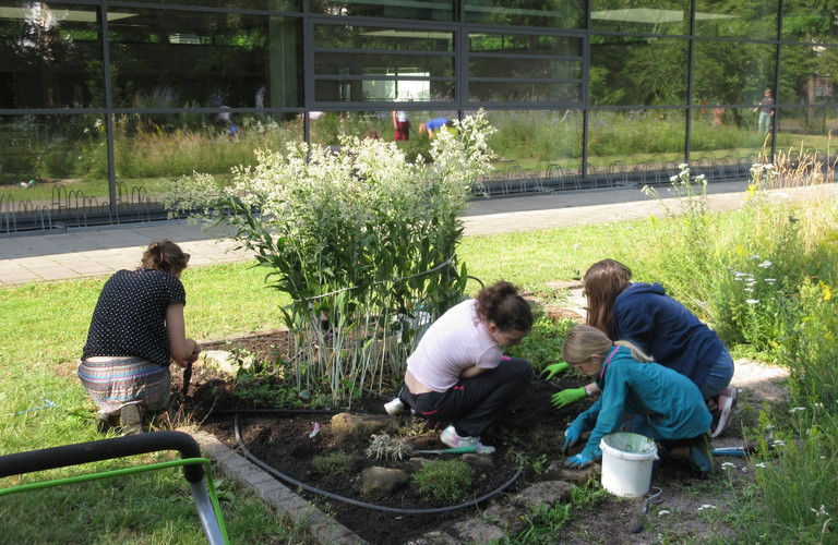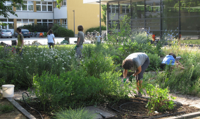 Unserem Biodiversitätsprojekt mit Kräuterspirale, Bienenwiese, Themenbeete, Insektenhotel, Schulimkerei und Klimaschulbaum gibt es seit nunmehr drei Jahren. Zur Pflege werden mehrmals pro Schuljahr große Arbeitseinsätze durchgeführt. Dies ist unser Beitrag zur Erhaltung der Artenvielfalt.