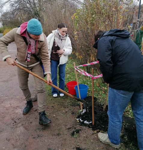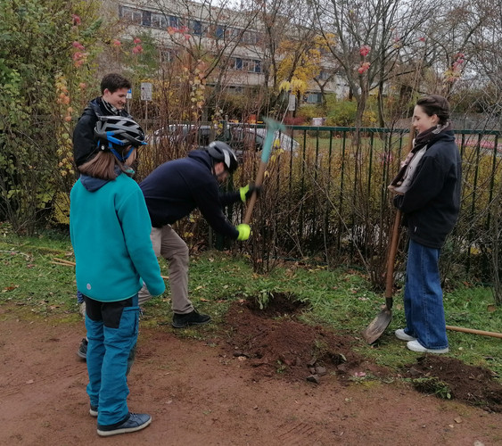 Am Freitag, dem 22.11.2024, pflanzten Schülerinnen und Schüler auf unserem neuen Schulhof eine kleine Linde. Sie ist ein Geschenk von Herrn Löser (Mitglied des Landtages). Er hat sie wiederum von einer Besuchergruppe aus Leipzig im Landtag übereicht bekommen.