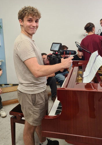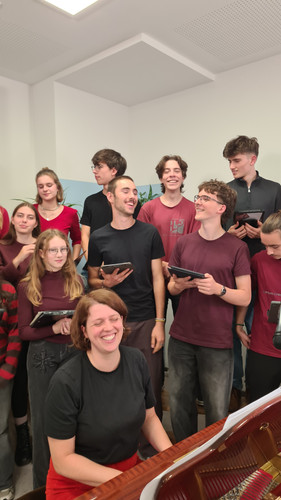 No Hit Wonder – der neue Film von und mit Florian David Fitz handelt von einem gescheiterten Popstar und der Kraft des Singens, die er in der Therapie anderen Menschen vermittelt. Um den Film zu promoten, wurde ein Chorwettbewerb ins Leben gerufen, an dem auch unser BeBe-Chor teilnimmt. Nach einigen Wochen intensiver Proben trafen wir uns in der Schule, um das von Florian David Fitz komponierte Lied „Time“ aufzunehmen. In Ermangelung einer Aula wurde der große Musikraum kurzerhand in ein Ton- und Filmstudio umgestaltet. Hannes Berthold, der selbst 2020 am BeBe Abitur gemacht und mittlerweile Mediendesign studiert hat, und sein Vater Matthias sorgten für die Bild- und Tonaufnahmen und die beiden Musiklehrerinnen Luise Sitzlack und Siegrid Unger begleiteten und dirigierten den Chor. Nach ein paar Stunden Aufnahme und Nachbereitung/Schnitt war es soweit: Unser erstes Musikvideo seit 5 Jahren war im Kasten – natürlich eine tolle Erfahrung für alle Beteiligten. Nun sind wir gespannt, wie unser Beitrag bei der Jury ankommt – die Konkurrenz ist groß, allein aus Dresden haben sich mehrere Chöre beworben.