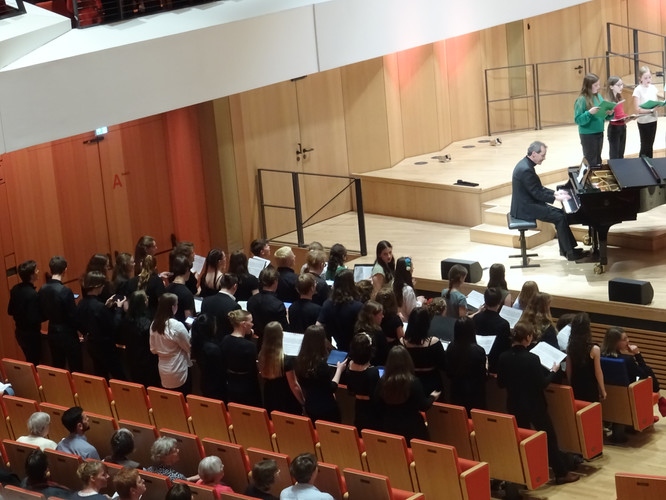 Vielen Dank an Frau Folprecht, Frau Sitzlack und Herrn Ferencz, die schon seit einigen Jahren sehr erfolgreich mit den Chören unseres Gymnasiums arbeiten und für die hohe Qualität, aber v.a. für eine unvergessliche und prägende Zeit aller Sängerinnen und Sänger sorgen!