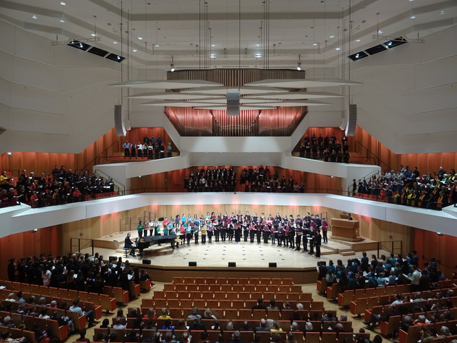 Bereits zum zweiten Mal wird die Chorarbeit des Bertolt-Brecht-Gymnasiums mit einem Preis gewürdigt: Der Chor des BeBe wurde mit dem „Förderpreis Dresdner Laienchöre“ ausgezeichnet und erhält ein Preisgeld in Höhe von 850 EUR. Im Rahmen des 5. Dresdner Chortages am 14. Mai im Kulturpalast präsentierte sich der Chor des BeBe in einem Konzert der 15 Preisträger-Chöre und war damit einer von drei Schulchören, die den Preis mit nach Hause nehmen durften. Nach einleitenden Worten von Jasmin Kogan (Jgst. 12), Chormitglied eines Großteils ihrer Schulzeit, präsentierten die Sängerinnen und Sänger unter der Leitung von Frau Folprecht mit „We are the music“ von Carl Strommen ein Stück ihres umfangreichen Repertoires und brachten so den großen Konzertsaal zum Klingen. Mehrfach wurde an diesem Abend der Wert der Gemeinschaft betont, die das gemeinsame Singen in einem Chor seinen Mitgliedern bietet und fördert. Vielleicht war genau das der Grund, weshalb die Chorschülerinnen und -schüler der Jgst. 12 mitten in der Abiturprüfungsphase auch dieses Konzert nicht ausließen und wie selbstverständlich mit dabei waren.