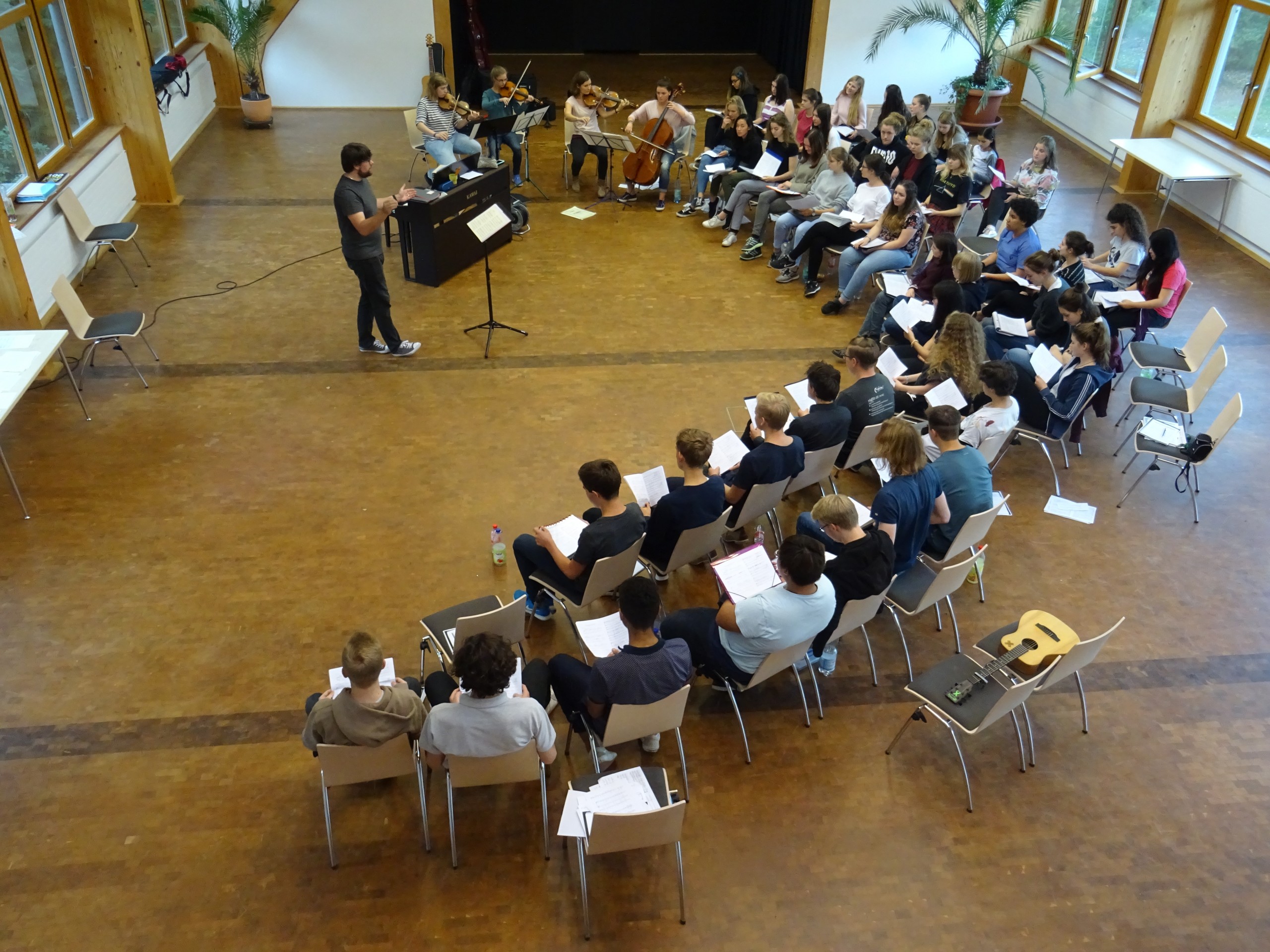 Auch wenn man jedes Jahr wieder irritiert darüber ist: Für alle sichtbar kündigt sich die Weihnachtszeit seit September mit Lebkuchen, Dominosteinen und Schokoladenweihnachtsmännern in den Supermarktregalen an. Für unsere Chorschüler hingegen ist es nichts Ungewöhnliches, im Oktober schon Weihnachtslieder zu singen. Vom 16. - 18. Oktober, im unmittelbaren Anschluss an die Herbstferien, fuhren sie - wie jedes Jahr - nach Schmiedeberg ins Chorlager, um die Stücke für die Weihnachtskonzerte im Dezember einzustudieren. Während der goldene Herbst draußen noch einmal alles gab, standen für die Sänger von vormittags bis in die Abendstunden hinein Proben an. Auch während der Pausen gab es musikalische Treffen, formierten sich kleinere Instrumental- und Gesangsensembles, die für den Bunten Abend, den IB-Kulturabend oder einfach aus Freude am Ausprobieren zusammenkamen. Der „Bunte Abend“ am Dienstag war dann für sich schon ein kleiner Höhepunkt, zu dem viele ihr Lampenfieber überwanden und es einige, bis dahin durchaus verborgene Talente zu entdecken gab. Am Mittwoch bestiegen alle nach einer weiteren Vormittagsprobe und einem Gesamtdurchlauf den Bus, um am Donnerstag in den Schulbänken wieder dem „normalen“ Unterricht zu folgen …