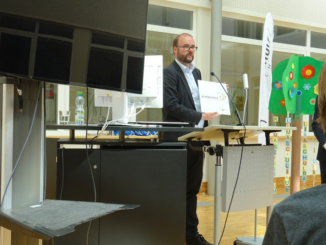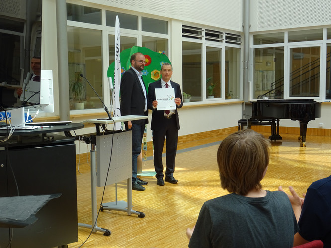 Christian Piwarz, Staatsminister für Kultus, war ebenfalls Gast der Veranstaltung und nahm sowohl die Verleihung des Titels als auch die Auszeichnungen für besonders Engagierte vor. In seinem Grußwort betonte er den Zusammenhang zwischen Umwelt, Klima und Bildung und bekräftigte den Willen zum Austausch und Dialog mit Schulen und Schülern. Das BeBe nannte er dabei einen Vorreiter - denn hier würden bereits Themen gelebt, die erst seit diesem Schuljahr auch Eingang in die sächsischen Lehrpläne gefunden haben.