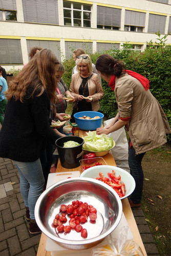 Zum zweiten Mal lud die DaZ-Fachschaft des Bertolt-Brecht-Gymnasiums am 28.09.2017 zum Fest der Kulturen ein. Und zum zweiten Mal organisierte und gestaltete sie – unterstützt von vielen Außenpartnern und weiteren Fachschaften des BeBe – ein Fest für alle Sinne. Denn nicht ohne Grund fragen unsere DaZ-Lehrerinnen unsere neuen Schüler zu Beginn jedes Schuljahres nach der Sprache ihres Herzens. Allerhand konnte man da riechen, schmecken, hören, sehen und fühlen – beim Tanzen, Singen, Spielen, Essen, Rätseln, Basteln, Balancieren, Zuhören. Die Freude und die Lust zum Ausprobieren standen dabei im Vordergrund. Das Wetter meinte es erneut gut mit uns und schenkte uns wie schon im Vorjahr einen warmen und sonnigen Nachmittag. Sehen Sie selbst und seien Sie auch nächstes Jahr wieder mit dabei, vielleicht sogar mit einem eigenen Stand?