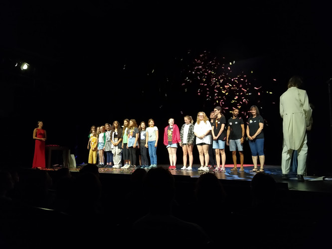 Am ersten Tag, dem 28.6.2023, fuhren wir voller Freude zum Schülertheatertreffen. Dort angekommen wurden alle Theatergruppen, angereist aus Zwickau, Niesky, Radebeul, Meißen und Zschopau, begrüßt. Dabei wurden zur Eröffnungsveranstaltung alle Gruppen vorgestellt. Danach folgten drei spannende Aufführungen. Wie im Fluge war der erste Tag auch schon vorbei.