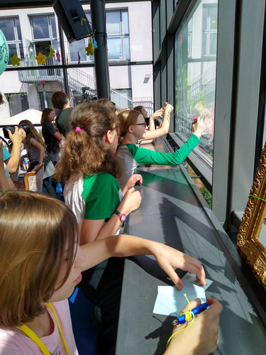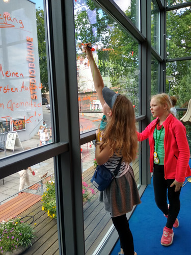 Der nächste Tag begann mit einer Erwärmung. Ähnlich wie beim Sport schüttelt man sich und taucht bereits in das Schauspielern ein. Danach wurden wir in die verschiedenen Workshopgruppen eingeteilt, wie zum Beispiel Songwriting und Rap und Schreiben mit dem Körper. Bei den Workshops konnte man sich kreativ austoben. Nach den Workshops gab es wieder eine Aufführung.