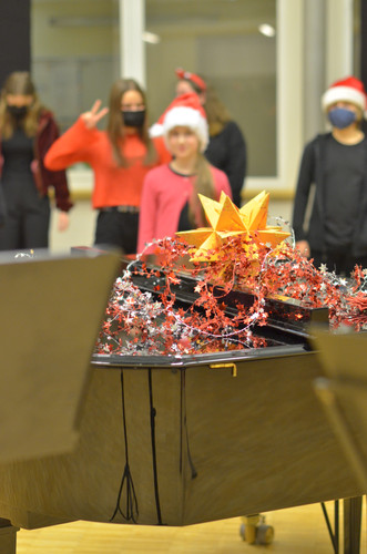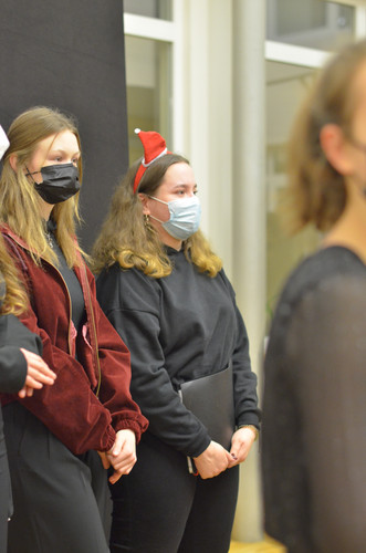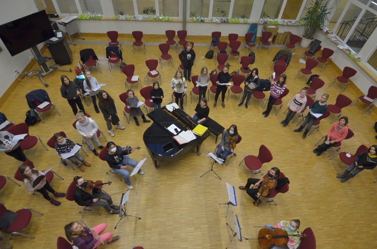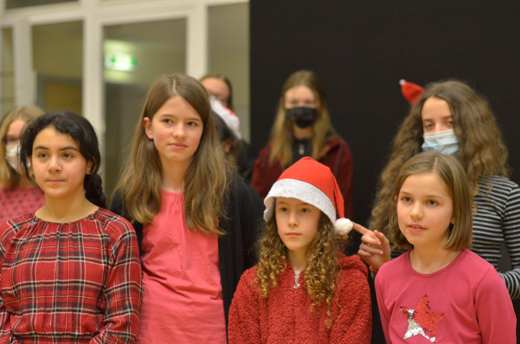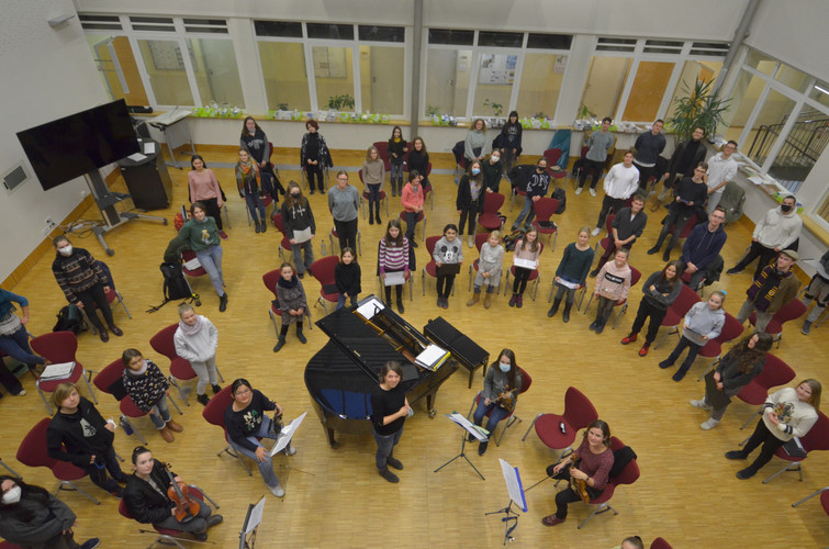 So lautete der Titel des geplanten Weihnachtskonzertes, welches nun bereits zum zweiten Mal wegen der Corona-Pandemie abgesagt werden musste. Bereits 2020 war dieses Projekt als Kooperation mit dem Chor "dimuthea e.V." unter der Leitung von Reinhart Gröschel geplant und geprobt worden. Sehr traurig ist das vor allem für unsere Zwölftklässler, die teilweise schon lange im Chor sind und nun in der Oberstufe überhaupt kein Weihnachtskonzert erleben und gestalten konnten. Auch die Kinder des trotz der erheblichen Einschränkungen im Musikunterricht stark angewachsenen Nachwuchschores waren sehr traurig, ihre einstudierten Stücke nicht vor Publikum aufführen zu können.