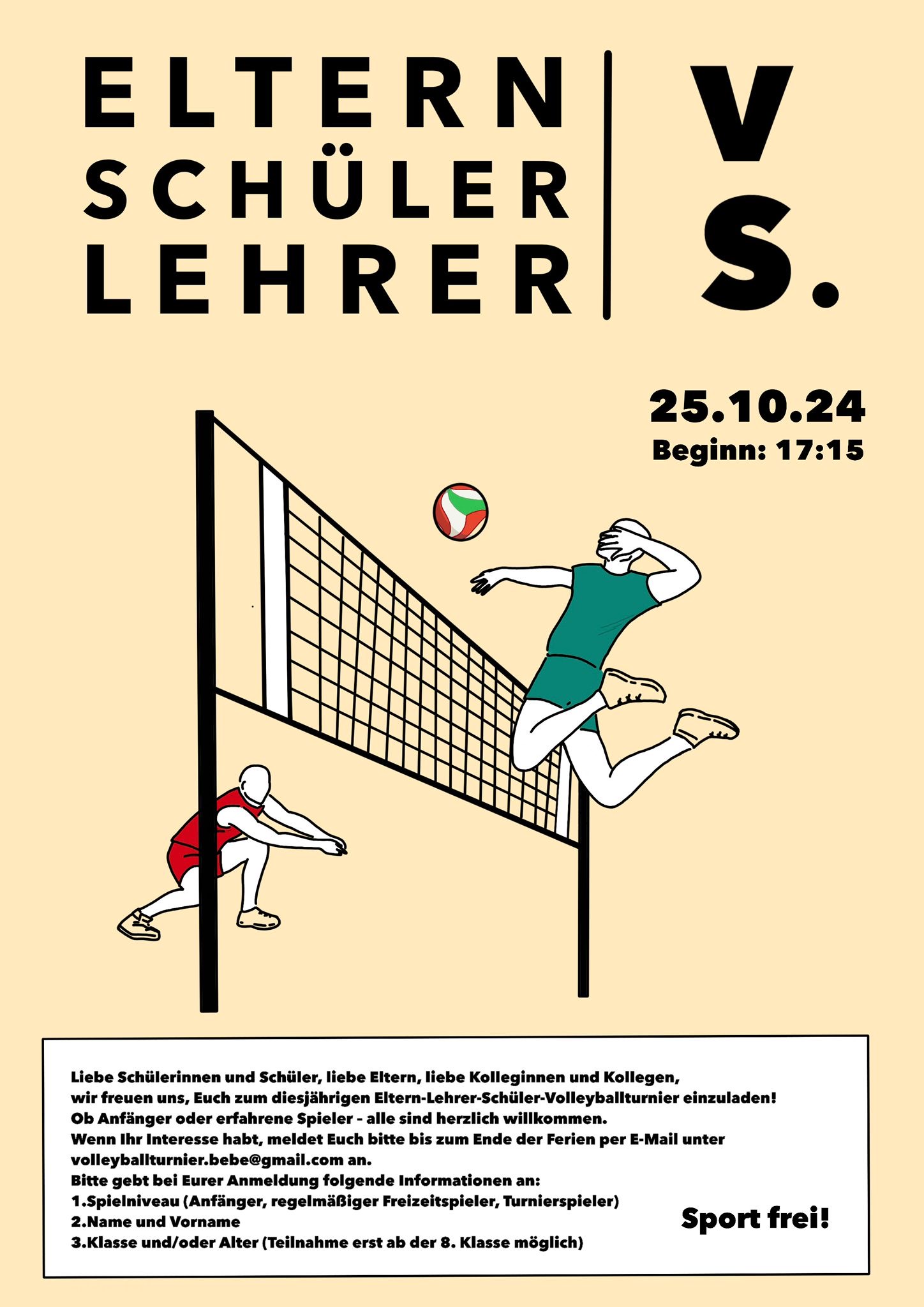 Einladung zum Lehrer-Schüler-Eltern-Volleyballturnier am 25. Oktober 2024