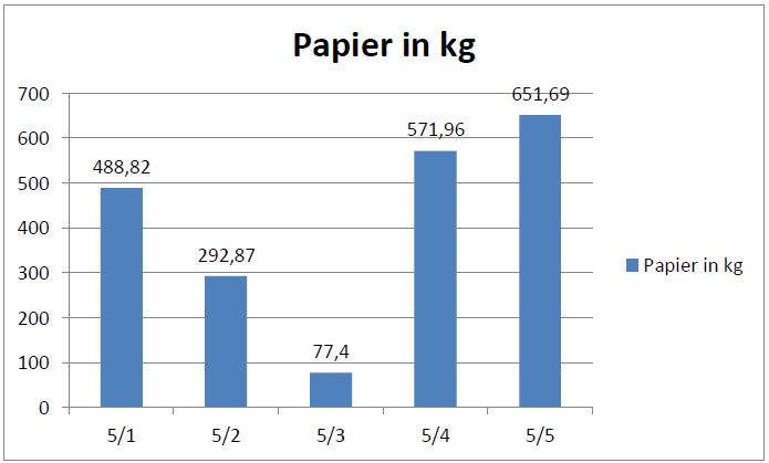 Im letzten Schuljahr hatte die Fördergemeinschaft die damaligen 5. Klassen zu einer Altpapiersammelaktion aufgerufen. Zum Schulfest sollte so viel Altpapier wie möglich gesammelt und mitgebracht werden.