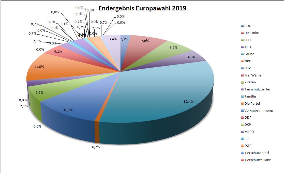 Die Wahlbeteiligung lag in unserer Schule damit bei knapp 60% (59,67%) und war somit höher als die reale Beteiligung 2014 (43%). Es wurden 145 gültige Stimmen abgegeben. Wahlberechtigt waren 243 Schüler aus den Jahrgangsstufen 10 und 11.