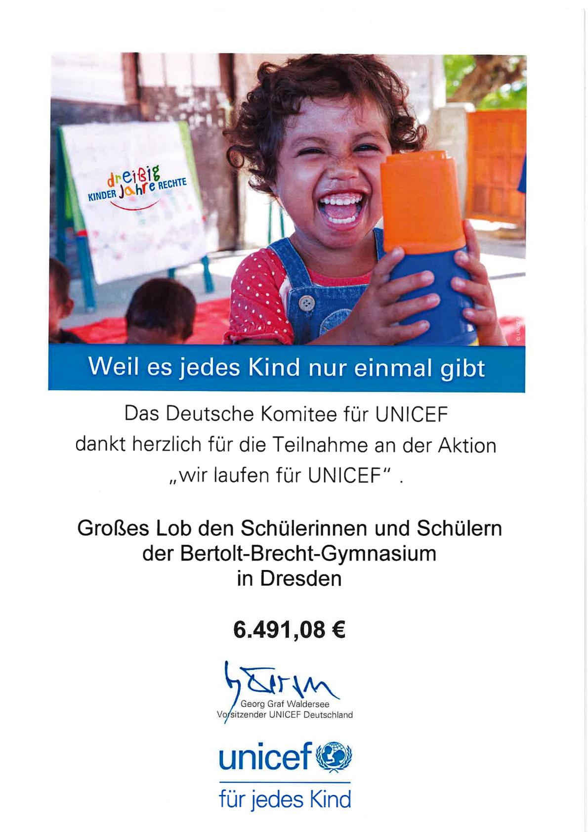 ihr habt/Sie haben vergangenes Jahr die Arbeit von UNICEF durch den Sponsorenlauf „Wir laufen für UNICEF“ aktiv unterstützt. Herzlichen Dank für das sehr bemerkenswerte Engagement! Ihr habt/Sie haben dazu beigetragen, die schlimme Situation vieler Kinder in Madagaskar zu verbessern.