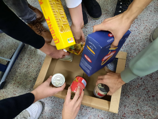 Den 9. Klassen war es ein besonderes Anliegen, in der Vorweihnachtszeit an diejenigen zu denken, denen es nicht so gut geht wie uns. Jeder brachte abgepackte, haltbare Lebensmittel, Süßigkeiten oder Hygieneartikel mit und so konnten die Klassen gemeinsam Hilfspakete packen, die kostenlos in die Krisengebiete der Ukraine geschickt werden. Wer ebenfalls ein Care- Paket verschicken möchte, kann sich hier informieren: https://www.dhl.de/de/privatkunden/information/hilfe-ukraine.html.