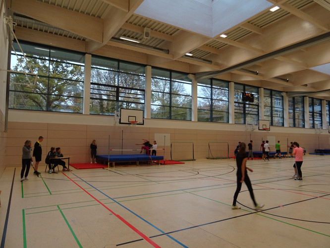 Nachdem Frau Herzog die Sportler eingewiesen hatte, ging es auch schon los. Als fleißige Helfer durften die Schüler aus Frau Herzogs Sportkurs mit anpacken und übernahmen die Organisation sowie das Kampfgericht. Nachdem sich die Sportler erwärmt und eingesprungen hatten, begannen auch schon die ersten gewerteten Sprünge, die glimpflich und ohne Verletzungen verliefen.