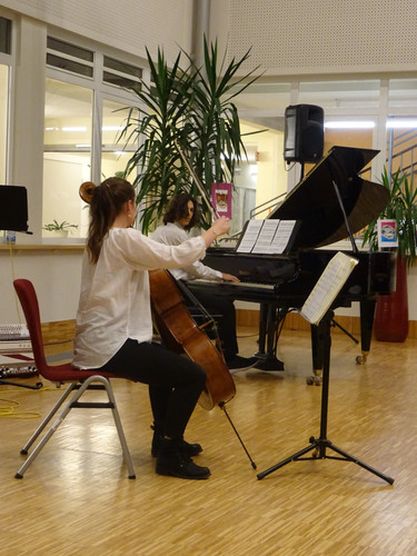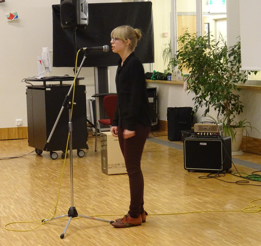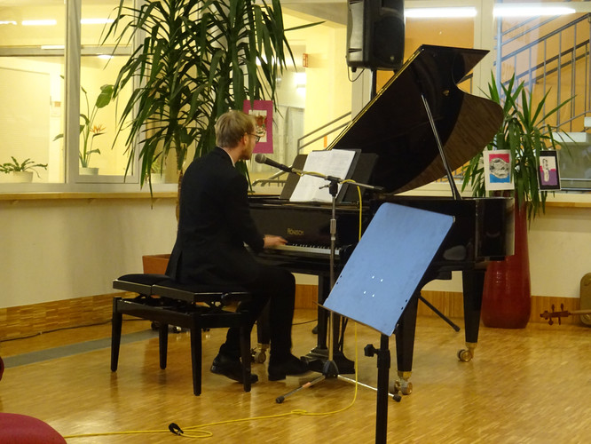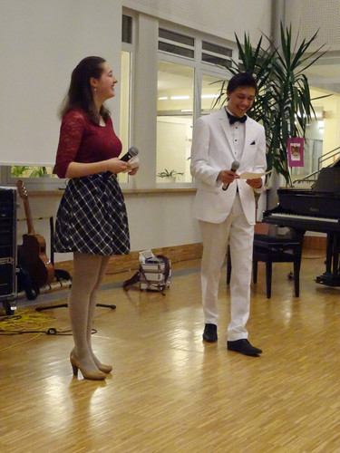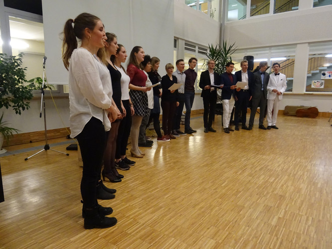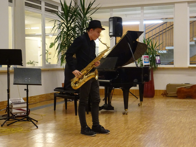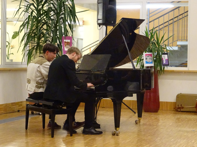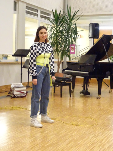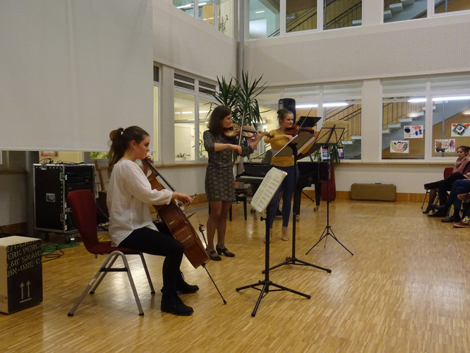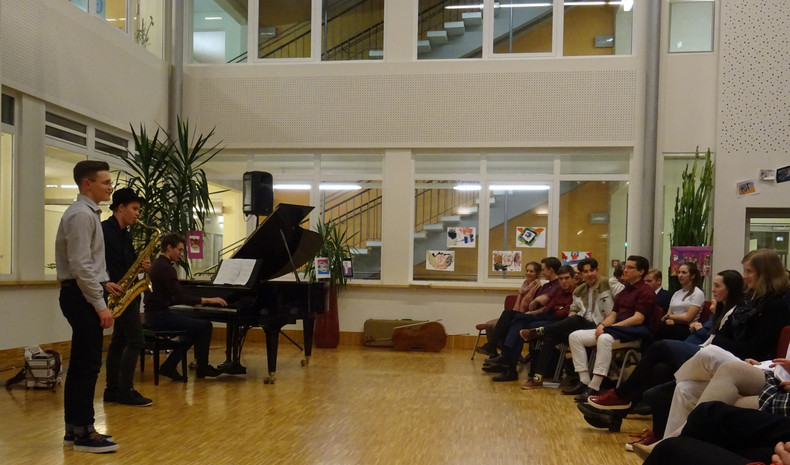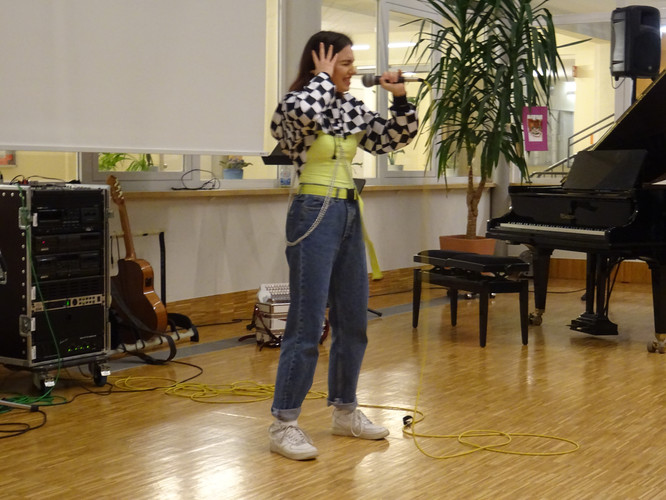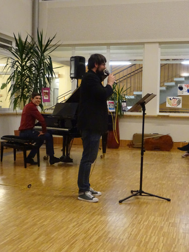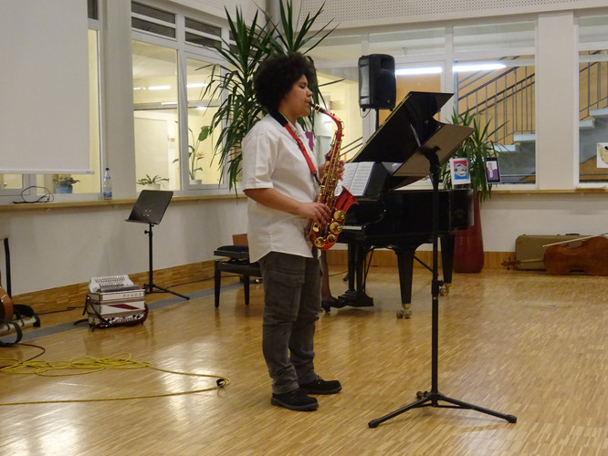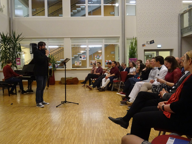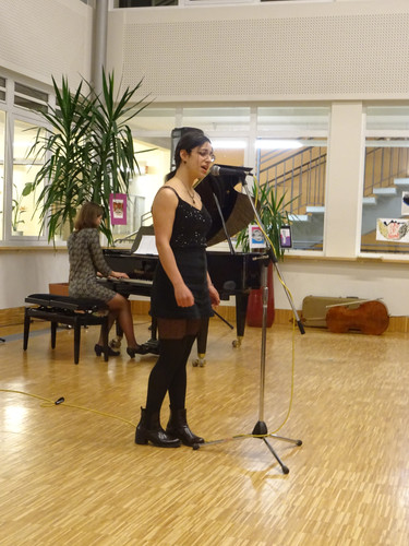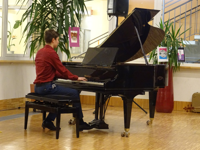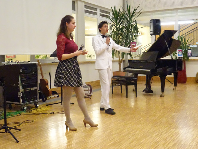 Jedoch ist damit noch nicht viel über den Abend gesagt. Schon der Beginn war ein Höhepunkt – das Lied „Welcome to the IB-Kulturabend“, von Konrad Behrend eigens geschrieben, um das Programm zu eröffnen, schloss sogleich die Herzen des Publikums auf. Margaritas und Valentins englisch-französisch-deutsche Anmoderation spiegelte die Freude wider, mit der alle Beteiligten bei der Sache waren. Die musikalischen Beiträge zeigten große stilistische und instrumentale Vielfalt und – fast noch wichtiger – die ganze Bandbreite von Emotionen, die zu solch einem Abend gehören: Ernst – Konzentration – Aufregung – Mut – Spaß – Humor – Liebe.