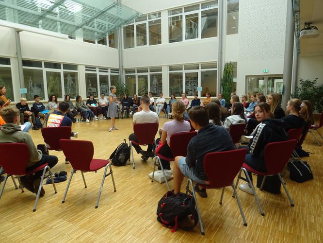 Although the festivities could unfortunately not be held, as hoped, in Görlitz, the 56 incoming IB students in grade 11 participated in the traditional opening workshop in BeBe's sunny auditorium (and less-sunny computer rooms). Instruction in the writing assignments, Extended Essay and CAS (creativity-activity-service) requirements was tolerated by all and the first successful entries were logged in all Managebac accounts. We thank all students and send special regards to participants in our first school service experience -- emptying the recycling bins. We are very proud of your energy and commitment!