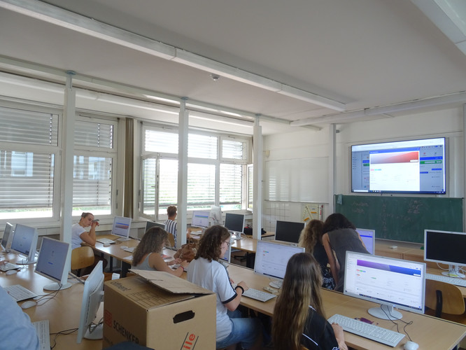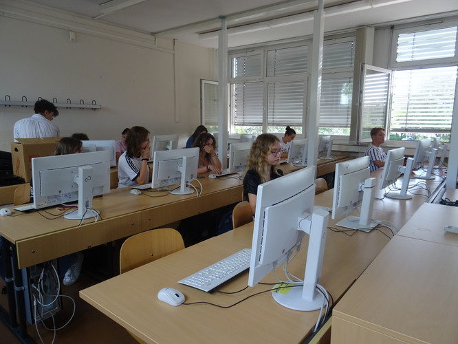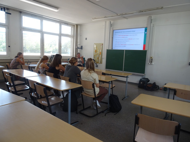 Afterwards, everyone was divided into groups and then the real activities started. One group started with learning more about the Extended Essay, which makes up a core part of the IB Diploma. With help from Ms. Borszik, they covered basic things like the main requirements and recommendations and how to find a good topic. Subsequently, two of our 12th grade students shared their experience and gave some tips on how to manage the process. Meanwhile, the rest of our students learned how to use ManageBac, the most important online portal for our students over the course of their IB, with Ms. Aradei-Odenkirchen.
