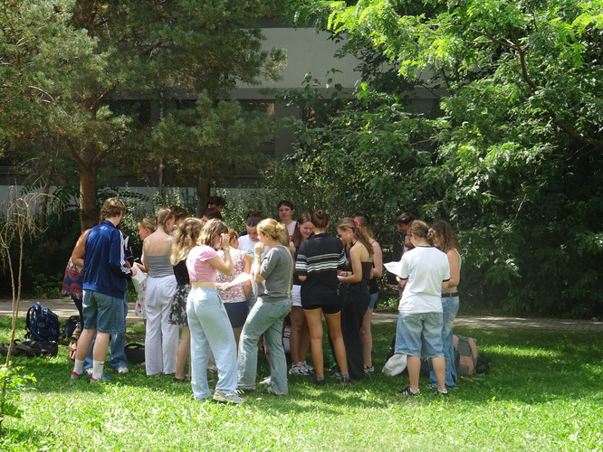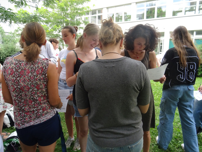On August 16, the introductory IB workshop took place for our students in 11th grade. Everyone participating in the IB, whether that means taking certain individual subjects or doing the entire diploma, attended, along with four of our 12th grade IB students who were there to help and give input by sharing their own experience. We started things off with some icebreakers organized by our IB Team consisting of Ms. Folprecht, Ms. Reitz, Ms. Borszik and our coordinator, Ms. Aradei-Odenkirchen. Through Bingo and more, there were a lot of opportunities for our students to get to know each other better and everyone instantly hit it off.