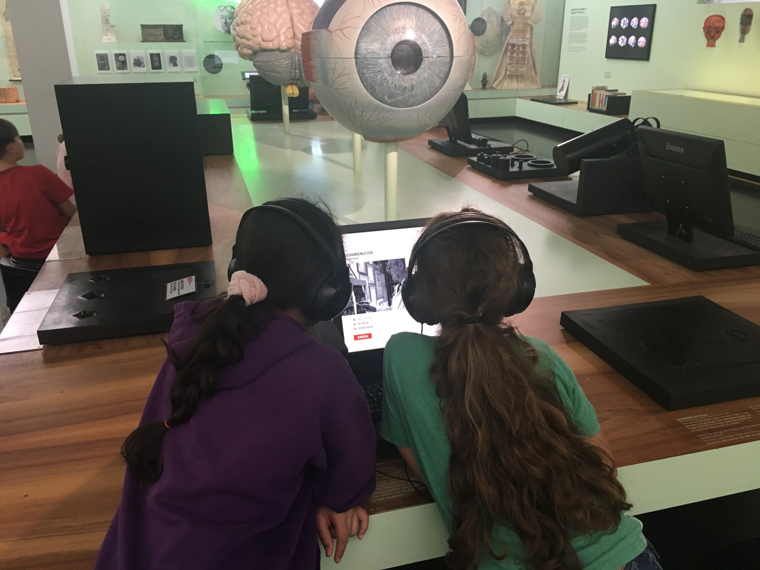 Dann nahm uns Katja in die Dauerausstellung „Abenteuer Mensch“ mit und wir konnten uns umschauen. Nach einer Weile verabschiedete sich Katja. Wir durften noch bleiben und sogar in einen zweiten Ausstellungsraum gehen.