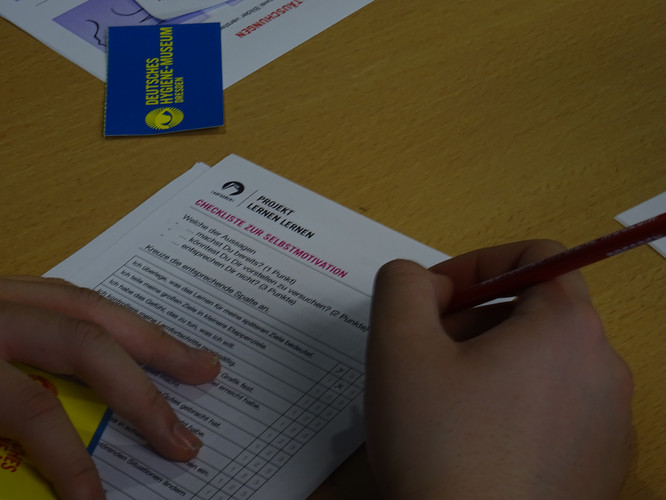 Am Freitag, dem 16. März 2018, gingen wir, die Klasse 8/2, um 8.25 Uhr los, um einen Workshop zum Thema „Lernen mit System“ im Hygienemuseum zu besuchen. Als wir eingetroffen waren und unsere Jacken und Rucksäcke abgelegt hatten, warteten wir noch knapp fünf Minuten auf den Leiter der Veranstaltung. Schließlich holte er uns ab und führte uns in das Arbeitszimmer, in welchem wir zunächst damit begannen, Fragen des Projektleiters bezüglich unserer Art zu lernen zu beantworten. Dazu musste sich jeder in einen der drei Antwortbereiche „Ja“, „Nein“ oder „Vielleicht“ stellen. Nach der Fragerunde setzten wir uns in Gruppen an fünf Tische mit verschiedenen Themen und bearbeiteten diese, indem wir die vorbereiteten Arbeitsblätter ausfüllten und im Kreis die Tische nach einer vorgegebenen Zeit tauschten. Die Themen waren „Lern- und Arbeitstechniken“, „Motivation“, „Konzentration“, „Zeitmanagement“ und „Lerntypen“. Zu jedem Thema gab es eine Aufgabe, die als Gruppe absolviert werden musste, und eine, die die ganz persönliche Art beurteilte. So gab es Zettel, mit denen man herausfinden konnte, welcher Lerntyp man ist oder wie man sich motivieren kann, und Aufgaben wie „Findet gemeinsam Tipps, um einen Text besser lesen zu können“. Als wir dies beendet hatten, werteten wir jedes Thema aus. Zum Abschluss besuchten wir die Dauerausstellung des Hygienemuseums, in der man einige Dinge zu den Themen Gehirn und Wahrnehmung ausprobieren konnte. Letztendlich haben wir einige neue, aber auch schon bekannte Lernmethoden besprochen und verstanden. Mit den neuen Tipps wird uns das Lernen in Zukunft hoffentlich ein wenig mehr begeistern.
