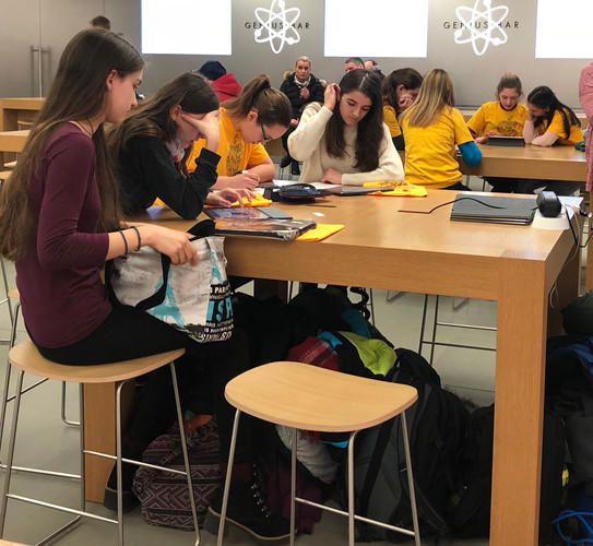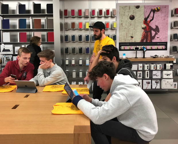 Am 05.02.2018 besuchten wir im Rahmen des Ethikunterrichts mit Frau Hentsche und Herrn Fabianski den Applestore in der Altmarktgalerie. Wir gingen zusammen von der Schule in die Stadt, um dort um 12:30 Uhr den 1,5stündigen Workshop zu beginnen. Konstantin, ein Mitarbeiter des Applestores, der für Schulungen zuständig ist, war unser Trainer und führte uns in die Thematik des Ipads eins. In Zweiergruppen erhielten wir ein ethisches Thema, zu dem wir mit den Ipads recherchieren, ein Interview gestalten und einen Film drehen sollten. Die Interviews bearbeiteten wir mit dem Programm I-Movie und erhielten nach der Abschlussrunde vom Applestore jeder ein T-Shirt und ein USB-Armband mit unseren Filmen drauf. Im Großen und Ganzen war es eine Abwechslung zum Schulalltag und interessant, mit dem Ipad und den Programmen ein kleines Projekt zu entwickeln. Wir wollen im Unterricht weiterhin mit den Ipads arbeiten und die Programme kennenlernen.