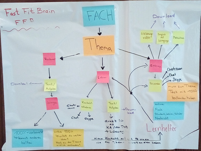 Für die selbstständige Arbeit wurden wir in Gruppen eingeteilt. Unsere Aufgabe bestand darin, eine Website oder App zum Thema Nachhilfe zu entwickeln. Dazu machten wir uns zunächst Notizen, fertigten einen Prototyp aus Papier an und stellten unsere Ergebnisse in Form eines Stop-Motion-Videos dar, welches jede Gruppe vor der Klasse präsentierte.