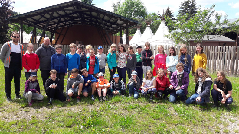 Im Camp angekommen wurden wir für die Zelt- und Hüttenverteilung in Gruppen aufgeteilt. Uns standen zwei Blockhütten und mehrere Tipis zur Verfügung. Später aßen wir zu Mittag und gingen anschließend auf der Mulde paddeln. Es war zuerst nicht einfach, weil es für viele von uns die erste Paddeltour war. Doch wir gewöhnten uns ein und dank gut koordinierter Gruppenarbeit klappte es immer besser, sodass alle viel Spaß hatten. Nach der Paddeltour gab es eine Kräuterrunde für interessierte Schüler und später unser Abendbrot. In der Nacht passierte noch etwas Unvorhergesehenes: Es begann zu regnen. Eigentlich kein Problem! Doch ein Tipi war undicht und konnte nicht geschlossen werden. Obendrein schlich ein Marder um die Zelte. Drei Mädchen mussten deshalb in einer Hütte übernachten.