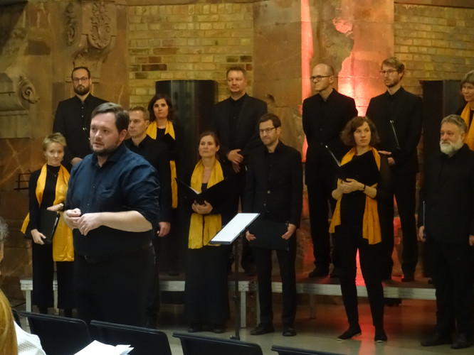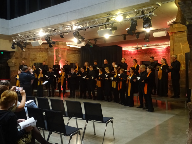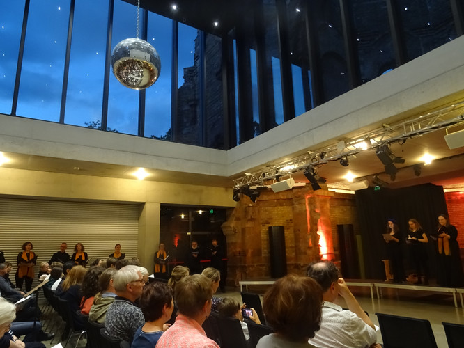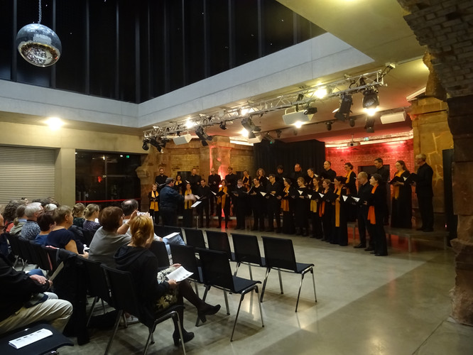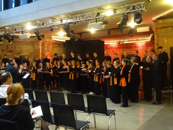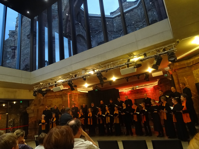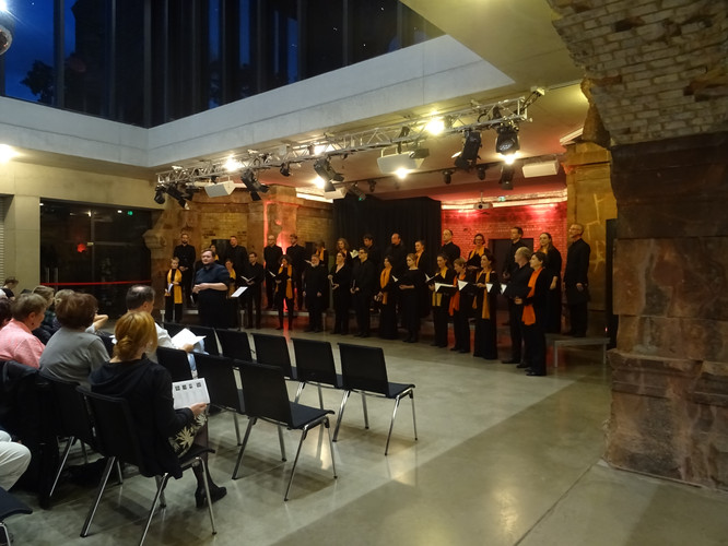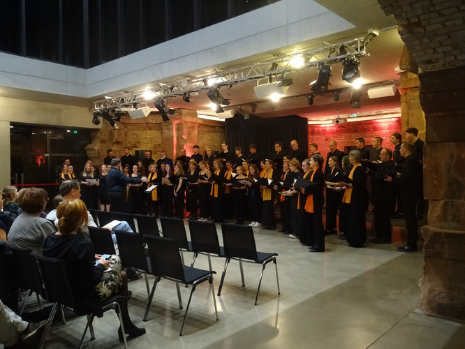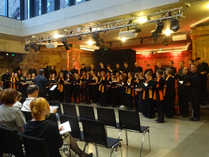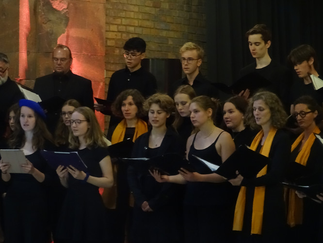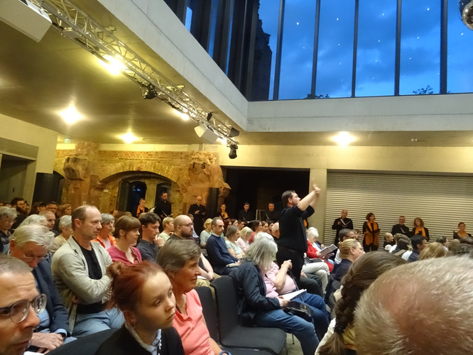 Und so wurde, während der Abend sich allmählich über das Glasdach der Trinitatiskirche senkte, das Publikum von beiden Ensembles ins Licht geführt – gekrönt von dem gemeinsam besungenen Aufgang des Mondes. Einen gelungenen Abschluss bot der Chor seinem Publikum bei einem geselligen Austausch im Anschluss an das Konzert.