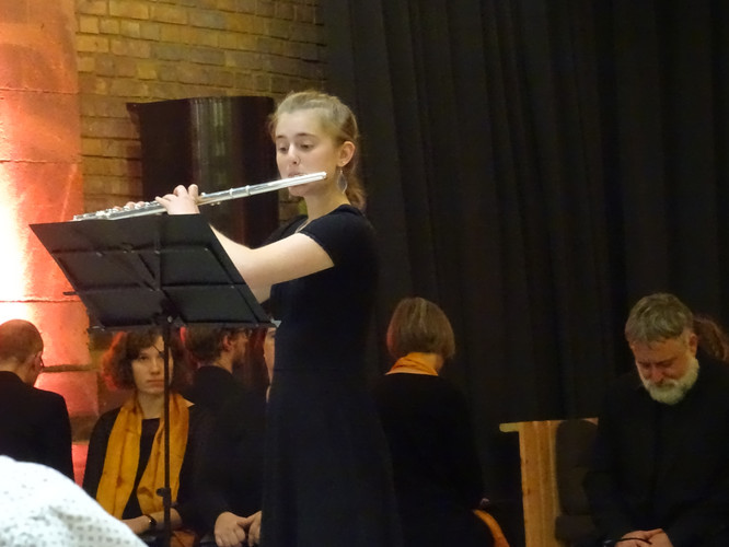 Unter dem Motto „Vom Dunkel ins Licht“ gab der Kammerchor „cantamus dresden“ am Samstag, den 23. September, in der Trinitatiskirche ein Konzert mit geistlicher Chormusik aus verschiedenen Zeiten und unterschiedlichen Stilrichtungen. Jeder Titel für sich versuchte dabei eine Antwort auf die Frage nach dem Umgang mit und dem Ausweg aus schwierigen Situationen zu geben. Mittendrin war der Chor des BeBe, der bei drei Titeln mitwirkte und mit der Jugend seiner Sängerinnen und Sänger diesen Gedanken auf besondere Weise mittrug. Cecilia Forster bereicherte das Konzert mit zwei solistischen Beiträgen auf der Querflöte.