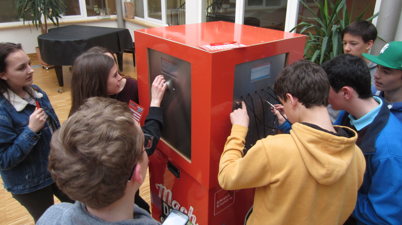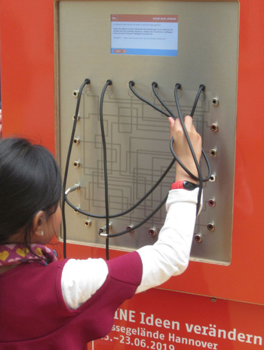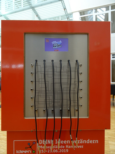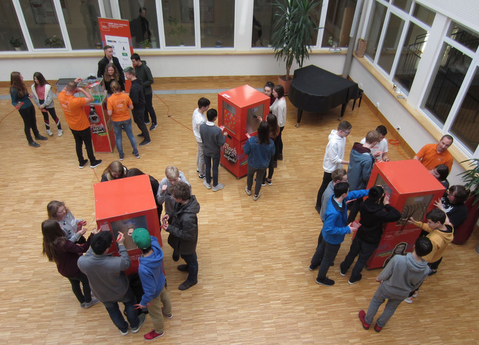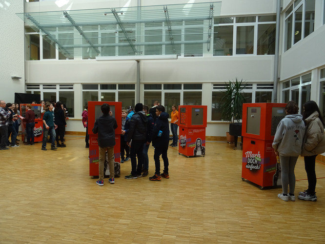 Am 6. März war ein Team der Ideen-Expo 2019, die vom 15. bis 23.06.2019 in Hannover stattfindet, an unserer Schule zu Gast und baute in der Aula fünf Mitmach-Boxen auf. An diesen konnten Schüler ihre Kenntnisse in MINT (Mathematik, Informatik, Naturwissenschaften, Technik) testen und erweitern. Dazu mussten sie: