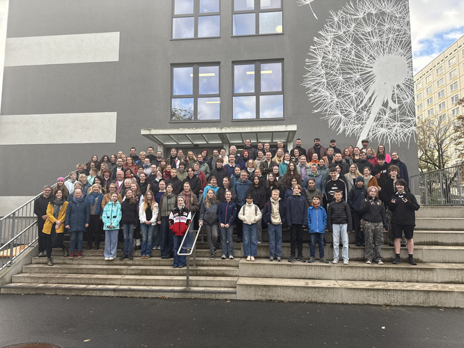 Unter dem Motto „Vielfalt und Gemeinschaft an unserem Gymnasium“ fand deshalb am Mittwoch, dem 29.10.2025, ein pädagogischer Tag statt. Nach einem gemeinsamen Auftakt in der Aula des Marie-Curie-Gymnasiums (vielen Dank an dieser Stelle in die Zirkusstraße!) tauschten sich die Lehrkräfte in fünf Themengruppen zu Schwerpunkten ihrer aktuellen pädagogischen Arbeit am BeBe aus und diskutierten darüber, in welchen Bereichen Veränderungen angestrebt, aber auch Bestehendes bewahrt werden sollte. Ebenfalls beteiligt war eine Gruppe von Schülerinnen und Schülern aus den Klassen- und Jahrgangsstufen 6-12, die die Belange der Schülerschaft aus ihrer Sicht diskutierten und für eine Weiterarbeit aufarbeiteten. Die Ergebnisse aller Arbeitsgruppen werden nun ausgewertet und der Ausgangspunkt für sich anschließende Schulentwicklungsprozesse sein.