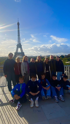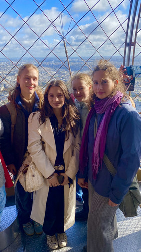 Am Freitagmorgen trafen wir uns wieder an der Schule, allerdings hatte sich die deutsche Gruppe für diesen Tag vorgenommen, die französische Hauptstadt zu erkunden. So fuhren wir (gemeinsam mit vielen tausend anderen Menschen im Pariser Berufsverkehr) mit der Metro in die Stadt und machten als erstes am Pariser Wahrzeichen schlechthin, dem Eiffelturm, Station. Nach vielen, vielen Fotos „erklommen“ wir ihn natürlich auch. Mehrere Fahrstühle brachten uns auf 280 Meter Höhe und wir hatten einen gigantischen Blick über die Stadt. Danach begaben wir uns auf eine einstündige Bootsfahrt auf der Seine, während der wir viele Sehenswürdigkeiten wie den Louvre, die Kathedrale Notre Dame oder das französische Parlament L’Assemblée Nationale aus nächster Nähe sahen. Am Nachmittag kamen auch einige französische Schülerinnen und Schüler dazu und wir besuchten zusammen noch das Viertel Montmartre. Den Tag beendeten wir, wo er begonnen hatte, nämlich am Eiffelturm. Mittlerweile war es dunkel und wir sahen ihn leuchten und glitzern.