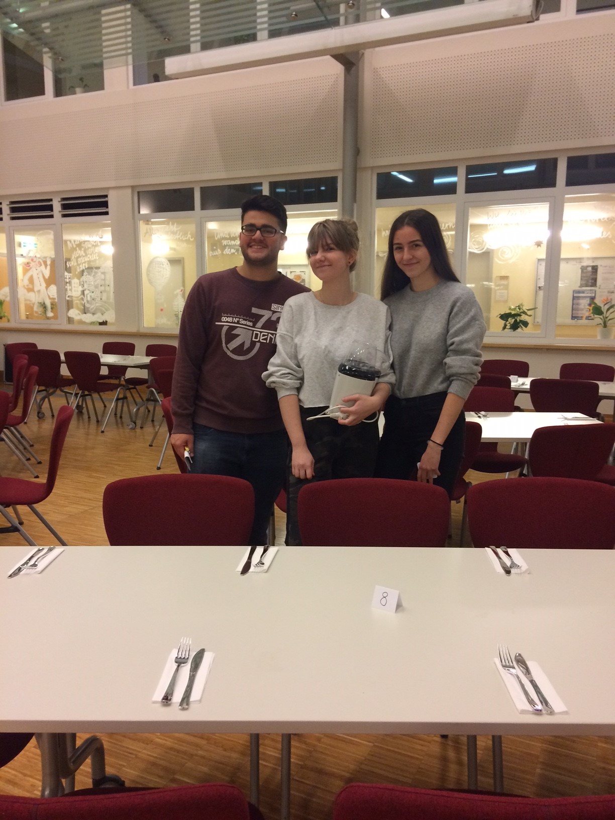 On 12 January, the first ever Student Restaurant served 143 3-course meals to BeBe students and their families. Organized by 12th graders Nils Fiebig and Emilie Ploß as part of their IB CAS service project, BeBe students prepared and served bruschetta with tomatoes, salmon in mustard cream sauce and a heavenly crème brûlée to their diners, earning 2,200€ to support this year’s Abiball. Special thanks to family Bou Hamze and family Ploß and congratulations to the amazing team of: