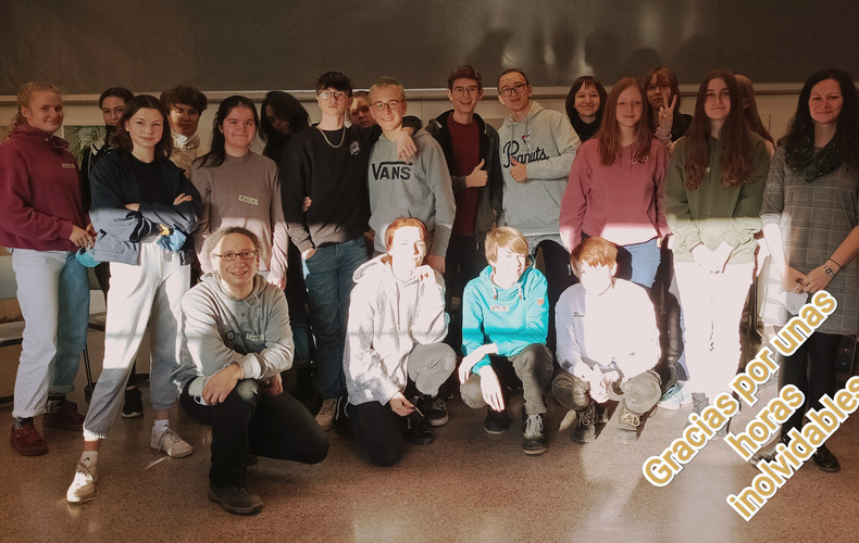 El viernes 21 de enero nuestra clase de español recibió la visita de León. Él es de Colombia, pero vive en Dresde. Teníamos un proyecto muy interesante con él para la pelicula "Tambien la lluvia". Tratamos temas como los prejuicios (sobre alguien), al consumo de agua y la falta de agua en América del Sur. A nuestra clase de español le gustó mucho el proyecto y aprendimos muchas cosas nuevas. Muchas gracias a León y a nuestras profesoras de español, la Sra.Guttowski y la Sra. Fuchs, por hacer realidad este proyecto.
