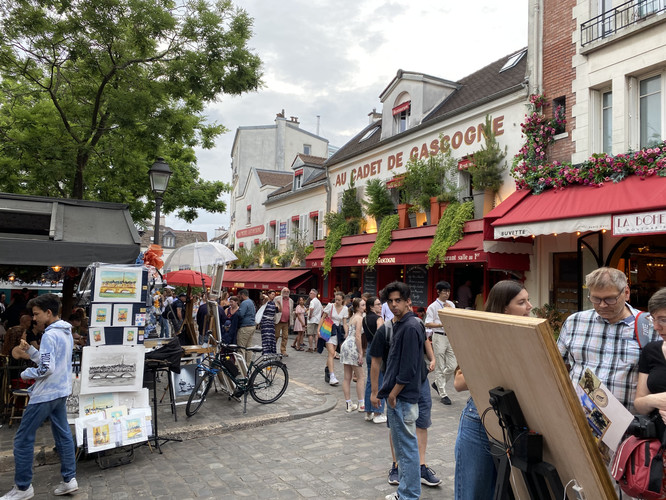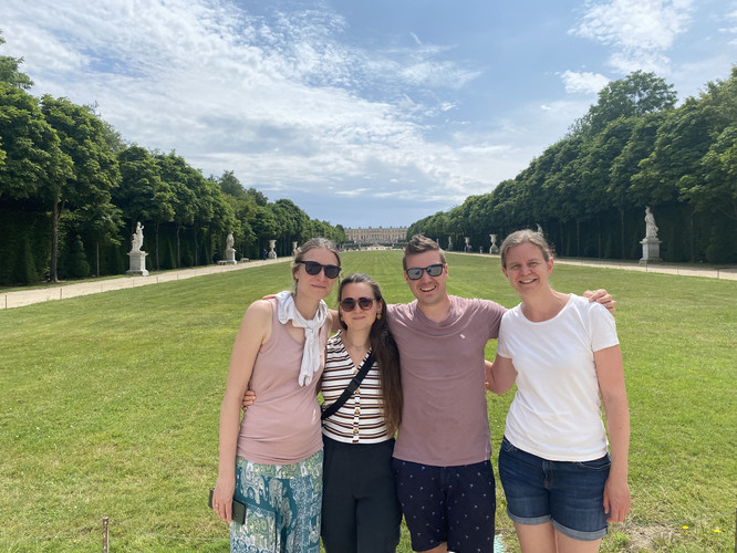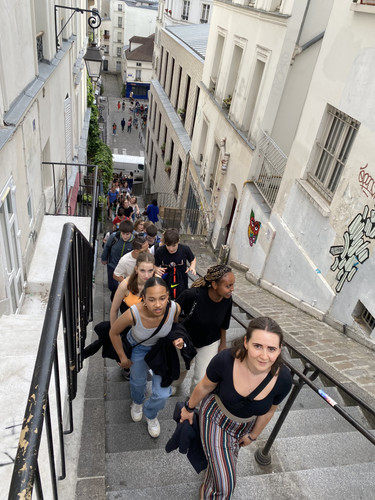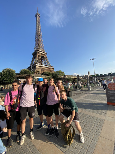 Schon seit Monaten war die Vorfreude riesig und am Abend des 18. Juni 2023 war es nun endlich soweit: 40 Schülerinnen und Schüler aus den 9. Klassen starteten gemeinsam mit Frau Bachmann, Frau Sontheimer, Frau Herrmann und Herrn Lindner in Richtung Paris. Nach einer mehr oder weniger entspannten Nacht kamen wir am Vormittag in Paris an und wurden von bestem Wetter empfangen. Vom Reisebus ging es dann auch gleich direkt mit der Metro weiter zum Invalidendom, wo der berühmteste Sohn Frankreichs, Napoleon, seine letzte Ruhestätte fand. Im Anschluss fuhren wir dann zur Jugendherberge, um uns von der Reise zu erholen und für den Abend frisch zu machen. Den verbrachten wir im malerischen Viertel Montmartre. Vorbei am Moulin Rouge und der mur des je t’aime (eine Wand, auf der in unzähligen Sprachen „Ich liebe dich“ geschrieben steht) ging es über die Place du Tertre zur Basilika Sacré-Cœur. Auf den Treppen vor der weißen Kirche hatten wir einen atemberaubenden Blick über ganz Paris und machten auch das traditionelle Gruppenbild der Reise, welches im kommenden Jahr im Zimmer 213 an der Wand hängen wird. Außerdem trafen wir Nele Voigt, eine Absolventin unseres Gymnasiums, welche zurzeit in Paris lebt und arbeitet.