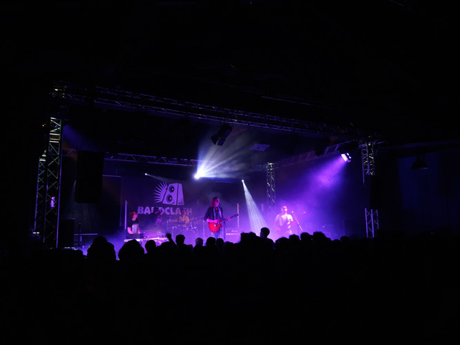 Das Los hatte im Vorfeld entschieden: „The Swinging Muffs“ würden als zweite Band am Abend des 20. Januar 2018 im Club „Tante Ju“ beim diesjährigen Regionalfinale des mittlerweile 11. Bandclash spielen. Ein Fanclub aus BeBe-Schülern, -Lehrern und Eltern war dabei, als die Band der zwei Frontmänner Jan (Gesang, Gitarre) und Cedric (Gesang, Bass) die Bühne betrat – nein: eroberte – und vier eigene Songs ihrer Band präsentierte. Am Vormittag waren sie noch in der Schule zum Tag der offenen Tür zu hören gewesen. Jan bezog das Publikum sofort mit ein und brachte es zum Tanzen und Jubeln – es war schön zu erleben, dass das nicht nur in unserer Aula wie selbstverständlich funktioniert.