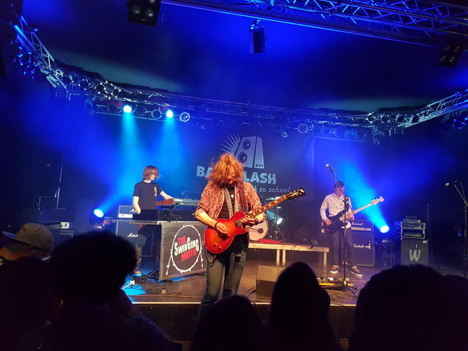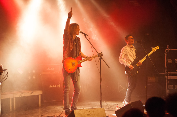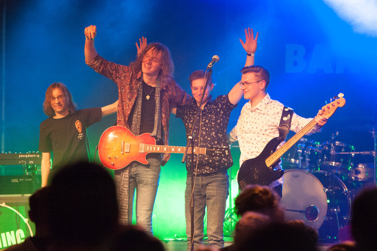 Einer muss den Anfang machen - dieses Mal waren es die "Muffs", die als erste von insgesamt sieben Nachwuchsbands auf die Bühne traten, denn wie in den Vorrunden war die Reihenfolge der Bands vorher ausgelost worden. Mit vier Songs mussten die vier Jungs zugleich das Publikum auf Touren bringen und sich selbst so gut wie möglich in Szene setzen. Gesang, Soli von Gitarre und Keyboard, ein tanzbarer Beat von Bass und Schlagzeug, Bewegung auf und vor der Bühne - sie machten alles richtig, der Funke sprang über! Doch kam es an diesem Abend eben auch darauf an, wie viele Fans man aktivieren und zum Voten mitbringen konnte. Da hatten am Ende des Konzerts andere Bands die Nase vorn. Die "Muffs" nahmen es sportlich, freuten sich über diesen weiteren Gig und hatten - laut eigener Aussage - einen tollen Abend! Wir auch! Wir werden euch und eure Entwicklung weiter verfolgen!