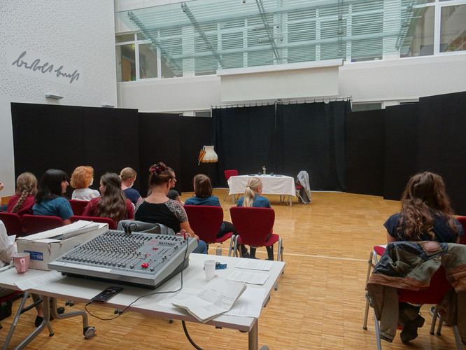 Über mehrere Monate und lange Arbeit wurden drei verschiedene Interpretationen von Brecht-Texten ausgearbeitet. Zwei Gruppen arbeiteten an dem Stück „Informer“ und stellten eine besondere Familiensituation vor. Die dritte Gruppe hatte das Stück „Salzburg - Dance of Death“ ausgewählt und stellte das Verhältnis von Reich und Arm im Bezug mit dem Tod dar.