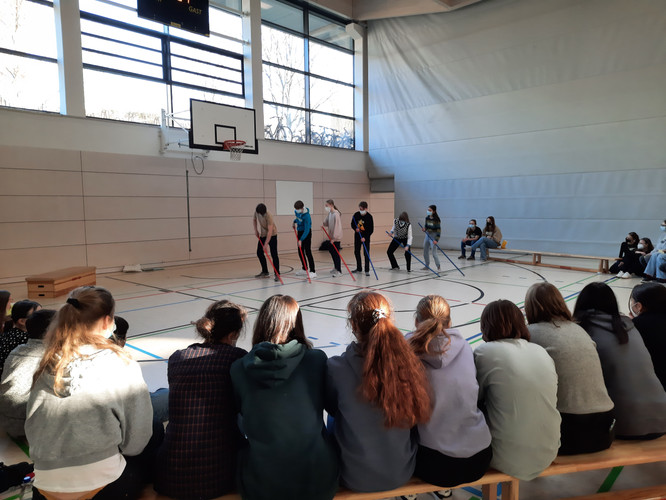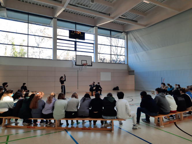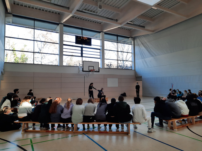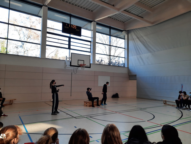 Dieses Jahr muss es endlich wieder klappen! Es ist seit Jahrzehnten an unserer Schule Tradition, dass am Ende des Schuljahres die zehnten Klassen einen Theaterabend für Eltern/ Großeltern/ Lehrkräfte/ … gestalten. Wie so vieles fielen auch diese Theaterabende die letzten zwei Jahre Corona zum Opfer. Wir sind zuversichtlich, dass es in diesem Jahr wieder möglich sein wird, etwas aufzuführen. Daher hatten die Zehner des BeBe in der letzten Woche vor Weihnachten gut zu tun. Nachdem die Facharbeiten (fast) fertig waren, durchlief jede Klasse zwei Projekttage, um das Theaterprojekt in Gang zu bringen. Unter dem Motto „Schwierigkeiten werden nicht dadurch überwunden, dass sie verschwiegen werden“ (Bertolt Brecht) entwickelten die Schülerinnen und Schüler am ersten Tag in einer Schreibwerkstatt Ideen dazu, was sie gern auf die Bühne bringen möchten. Am zweiten Workshop-Tag erlernten die Schülerinnen und Schüler ein paar praktische Methoden dazu, wie sie als ganze Klasse eine Bühne ausfüllen können.