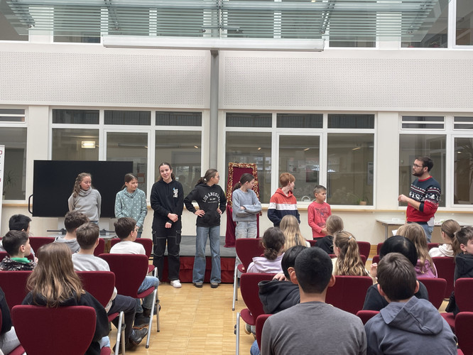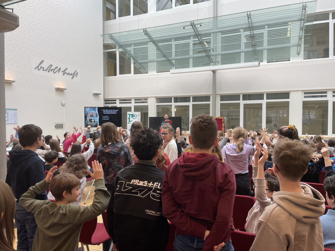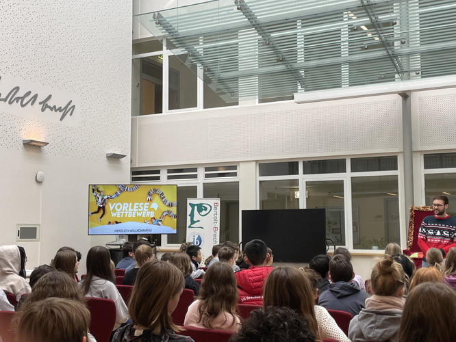 Jedes Jahr findet in unserer Schule der Vorlesewettbewerb statt. Dabei suchen die Schülerinnen und Schüler der 6. Klassen den besten Vorleser oder die beste Vorleserin. Dieses Jahr fand der Wettbewerb am 4. Dezember in der Aula des Bertolt-Brecht-Gymnasiums statt. Der Wettbewerb geht nun in die nächste Runde – den Schulausscheid.