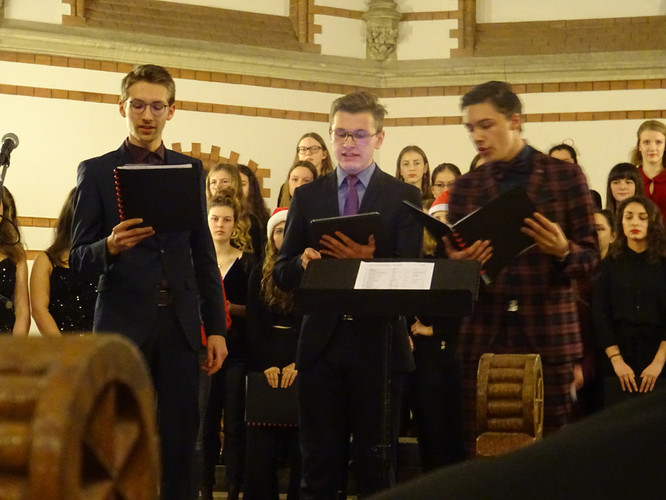 Auch in diesem Jahr war das Weihnachtskonzert mit einem Abschied verbunden – für einen Großteil des Chores endet das Schuljahr mit der Abiturprüfung. Umso schöner war es zu erleben, dass dieser Teil des Chores seine besondere musikalische Verbundenheit mit Frau Folprecht in eigens ihr gewidmeten Dankesworten zum Ausdruck brachte.