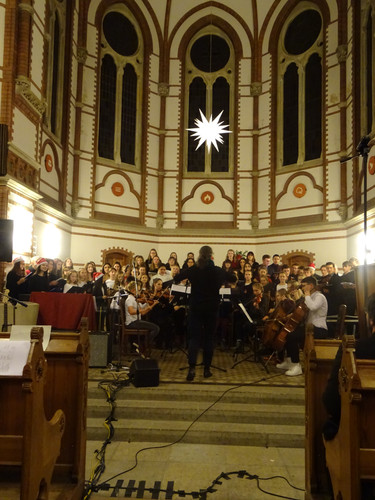 Das, was unter der Leitung von Frau Folprecht, Frau Sitzlack und Herrn Ferencz zusammen mit Chor, Nachwuchschor, Solisten, Band, Instrumentalensemble, Musikkurs und Lehrerchor über mehrere Wochen Probe hinweg entstanden ist, war beeindruckend und rührend. Am Ende waren nicht nur die Tore, sondern vor allem die Herzen weit. Damit war alles erreicht. Das macht die Wirkung von Weihnachtsliedern aus, genau das verbindet man mit dem Wort „Weihnachtslied“. Bräuchte man dafür ein Synonym, dann gäbe es eines.