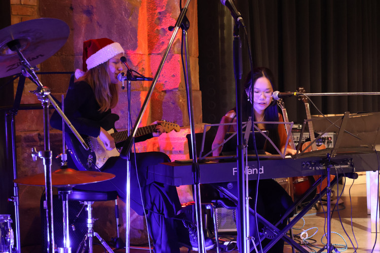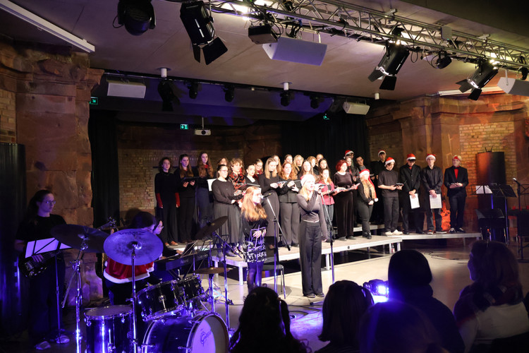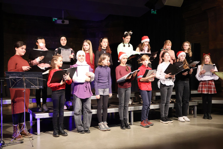 Und es leuchtete und strahlte: die Augen der jungen Sänger und Sängerinnen, die Augen der Eltern, der Klang der Instrumente und die Sterne überm Dach der Kirche. Die Weihnachtsbotschaft von Frieden, (Nächsten)Liebe und Versöhnung wurde in traditionellen Weihnachtsliedern, zeitgenössischen Popsongs, Instrumentalstücken und Spirituals verbreitet. Neben den Chören, der Schulband und dem Instrumentalensemble gestalteten vor allem Schüler des Abiturjahrgangs das Konzert auf beeindruckend hohem Niveau! Aber nicht nur Schüler standen auf der Bühne: auch Lehrer erleben das Verbindende der Musik und traten gemeinsam als Lehrerchor und Lehrerband auf. Das Publikum zeigte sich begeistert von der Vielfalt des Programms und forderte sogar Zugaben!