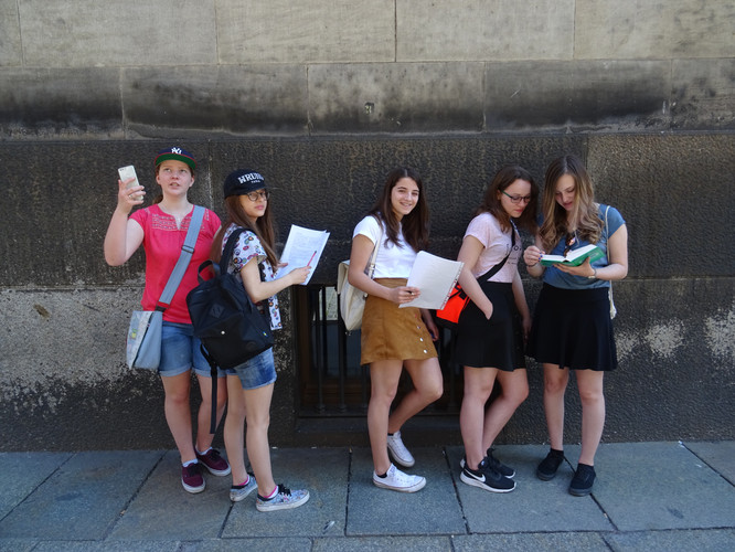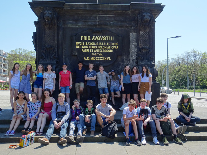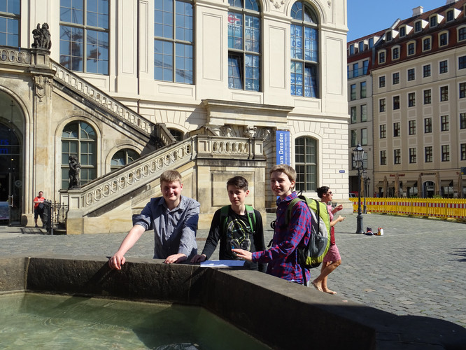 Am Freitag zwölf Tage vor den Kalenden des Juni waren wir, die Klasse 8/1, in der Innenstadt Dresdens auf der Suche nach lateinischen Inschriften. Convenimus an der Schule und cucurrimus dann communis als Klasse an der Elbe entlang ins Stadtzentrum. Dort teilten wir uns auf und absolvierten munera nostra. Während wir als Truppe per vias streiften, tat sich uns eine Eisdiele auf. Caelum calidum ließ non solum das Eis schmelzen, sed etiam uns schwitzen. Unsere Selfies ante inscriptiones zeigen gaudium und defatigationem in den Gesichtern. Incitatae von den Leistungen der anderen Gruppen wollten wir unser Bestes geben. Caelum sine nubes sorgte dafür, dass wir cum hilaritate die Aufgaben erfüllten. Auf dem Weg zum Treffpunkt trafen wir die anderen Teams und lösten gemeinsam die letzte Aufgabe, die uns ad praemium führte. Noch ein Gruppenfoto und dann ging es zum Eiscafé, wo wir alle ein Eis bekamen und diem ausklingen ließen.